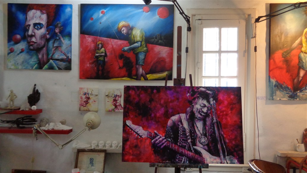 – Paintings are done on unstretched canvas to keep shipping costs down and more room for storage.