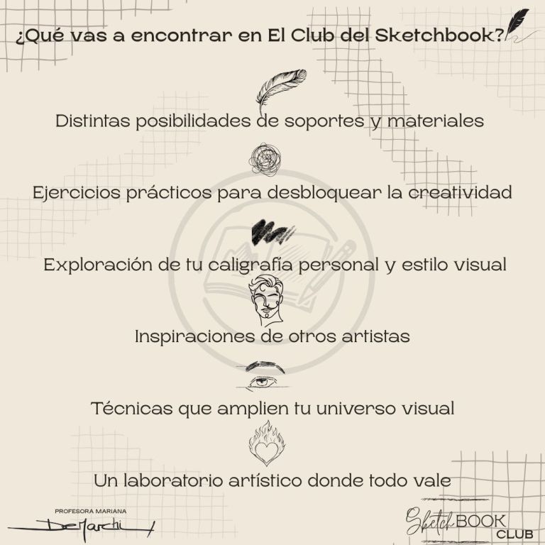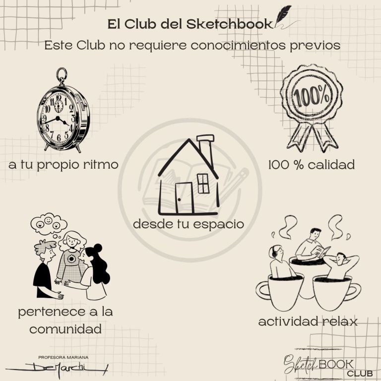 El Club del Sketchbook es un espacio online para explorar tu estilo, tu caligrafía y tu creatividad personal.