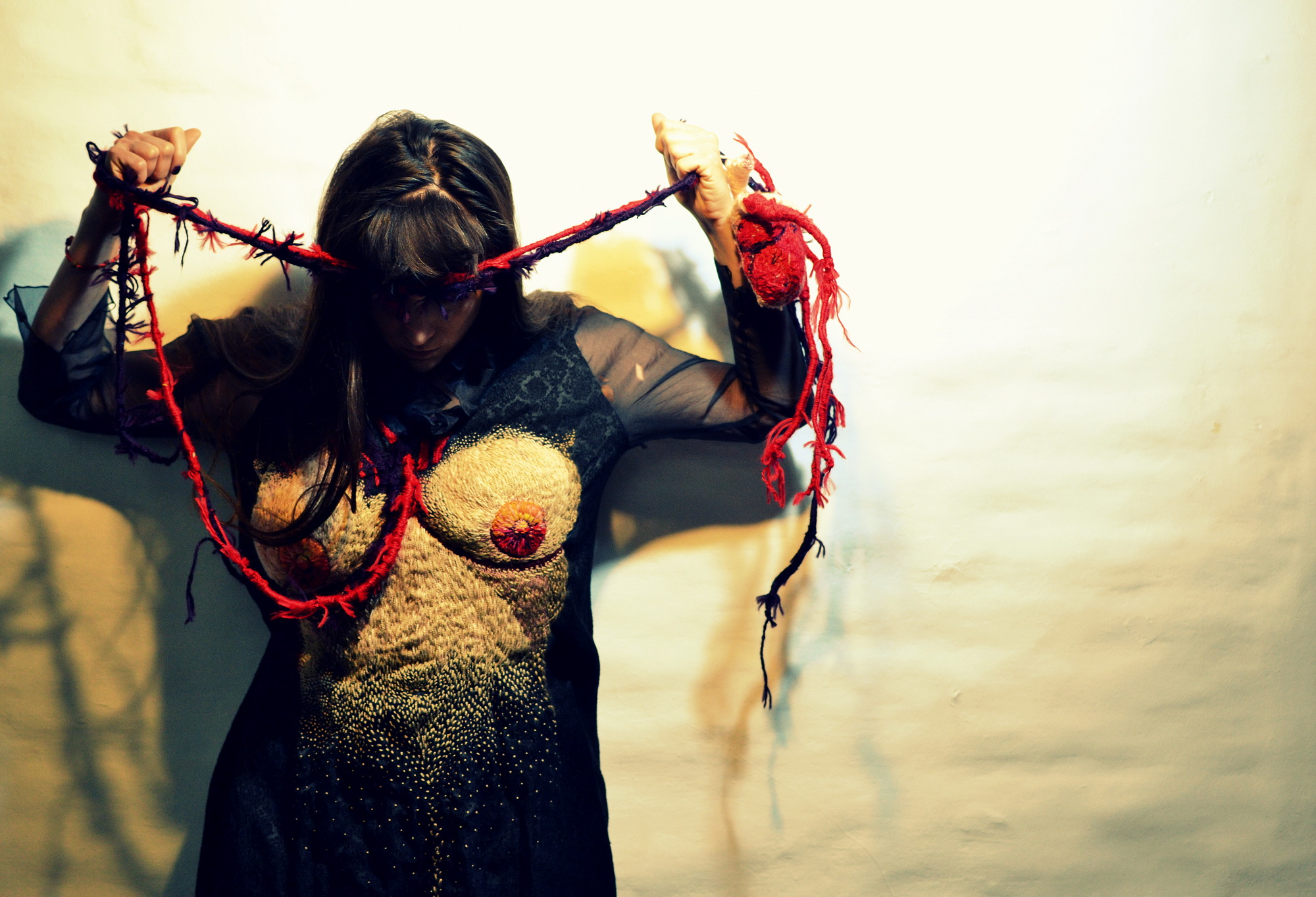 VestidosNegros – NiUnaMenos – embroidered vintage dress and textil heart